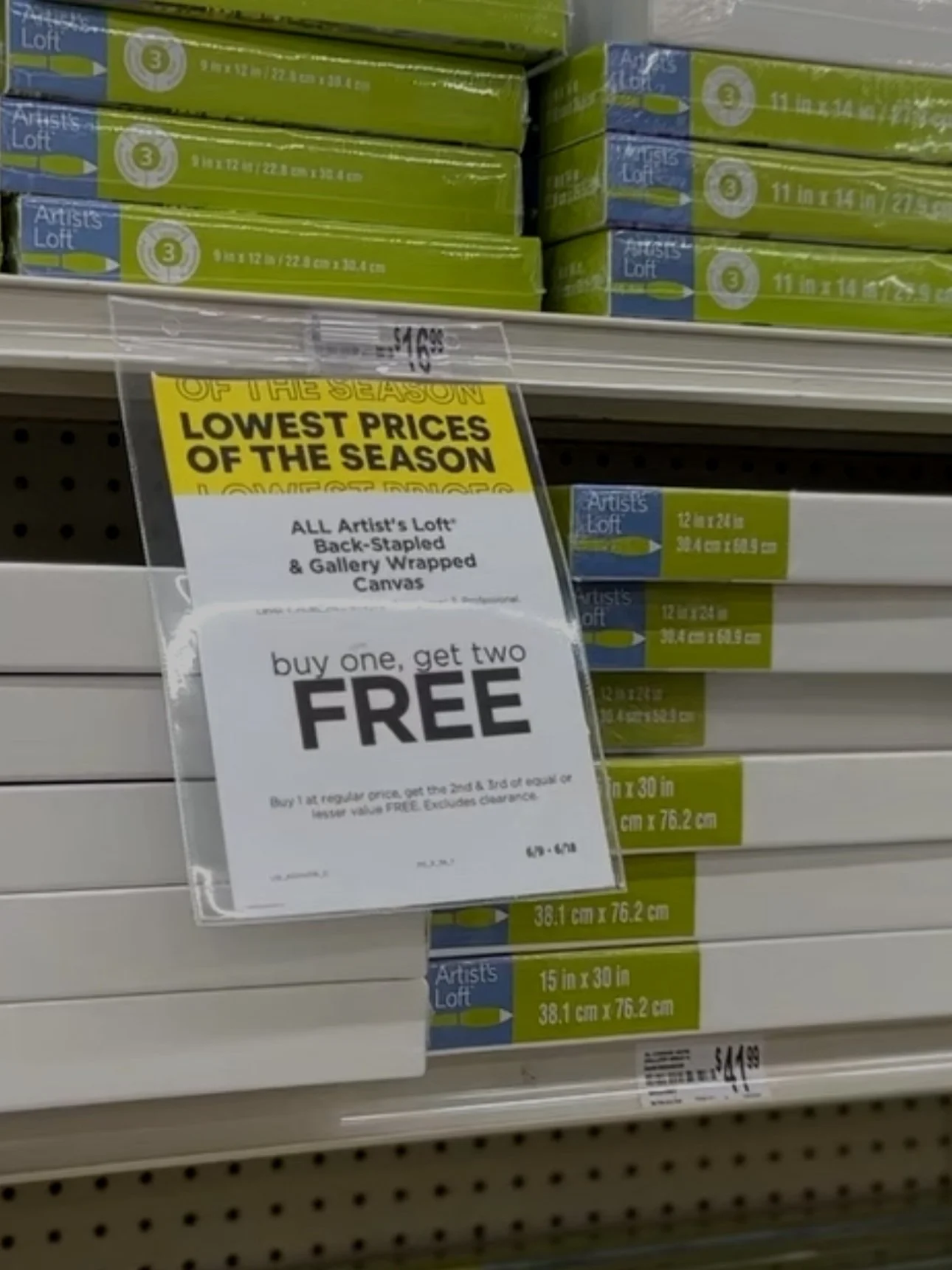 Michael’s sometimes offers a bulk sale, where you can buy 2 and get 2 canvases FREE! (Used to be Buy 1 get 2 free). Otherwise Blick.com is your cheapest option.