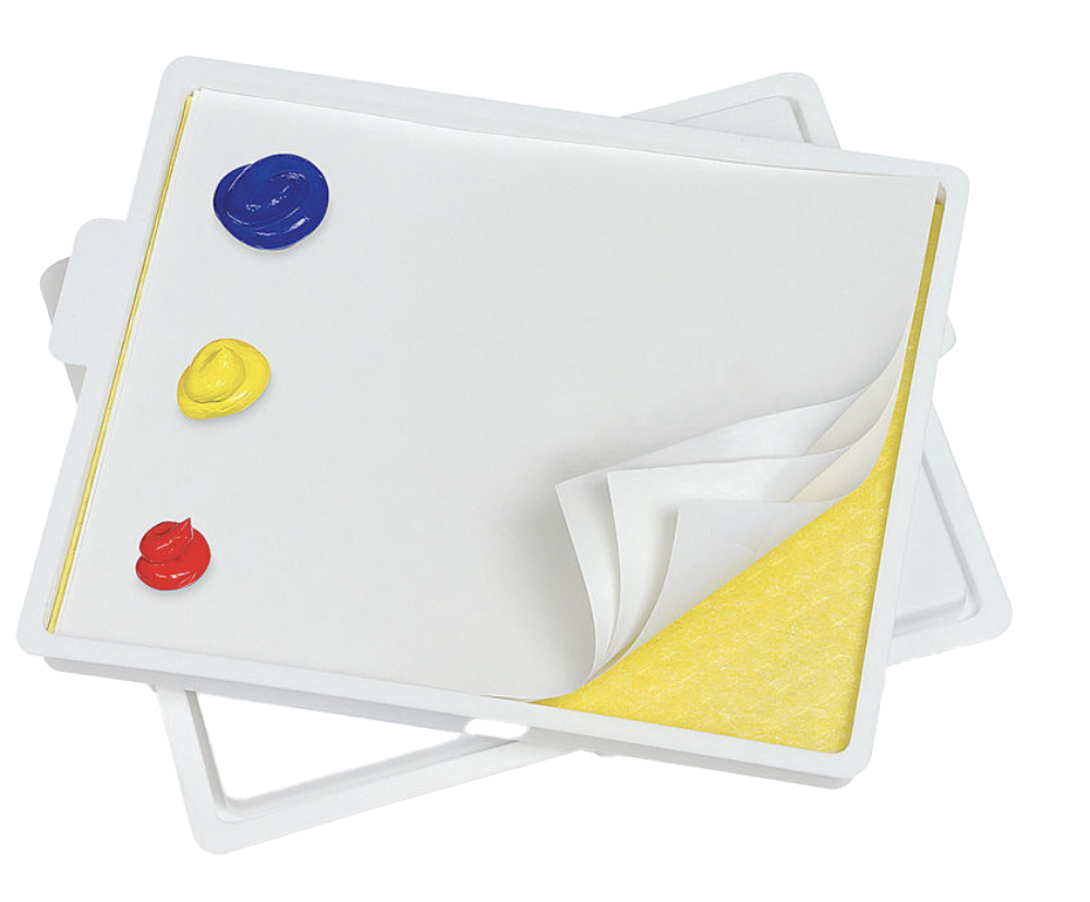 To keep my paint from drying out and being able to use the same mixed paints in a future paint session, I am using the Masterson Sta-Wet Handy Palette. It will save you so much money on paint and time on remixing paint! The Palette has a sponge underneath an acrylic paper sheet (which is also cleanable, so you can reuse it!). It comes with five Sta-Wet palette paper sheets and one sponge insert. Replacement sheets and sponge inserts are also sold separately.